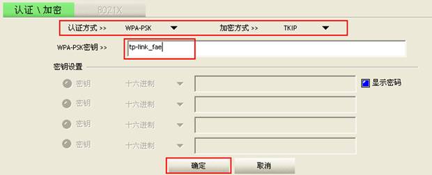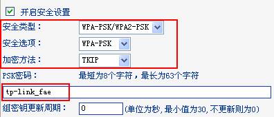 例如:在“TP-LINK_FAE”這個(gè)無線路由器上,無線安全的設(shè)置是: