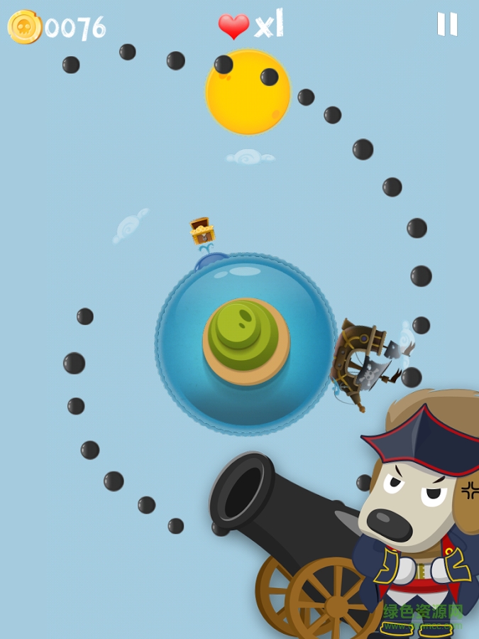 《海盜快跑 Pirate Ship》是一款非常好玩的益智休閑游戲。初次進入的游戲,可能會對游戲的場景眼前一亮,迷你的小地球,外加一艘比例不對稱的海盜船,最后加上無限的天空就構成了本作的一切,雖然看起來簡單,但其色彩的搭配都算是不錯,同時游戲中也添加了晝夜變化模式。