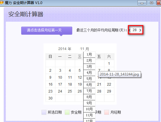 魔力安全期計算器是一款專門用來計算女性安全期時間日期的工具,非常的便捷實用,有了它你可以輕松酸楚自己老婆的安全期,然后嘿嘿嘿。女性的安全期計算方法是:排卵日期一般在下次月經(jīng)來潮前的14天左右。除了月經(jīng)期和排卵期,其余的時間均為安全期。許多人認為,在安全期性交可不必采用任何避孕藥物和避孕工具。小編也是納悶,咱一個大男人學這些干啥,哎木有辦法,為了避免發(fā)生意外噠,還是服從上級命令。有了這款軟件減少了不少負擔,只需要輸入老婆經(jīng)期的數(shù)據(jù)就能找到安全期了。
