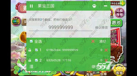 接著,我們和上面一樣搜索5,然后升級一下菠蘿哥記住,只升級一下,不要著急升級橙子!然后選擇變成了3升級橙子,然后再選變成了1,然后99999999