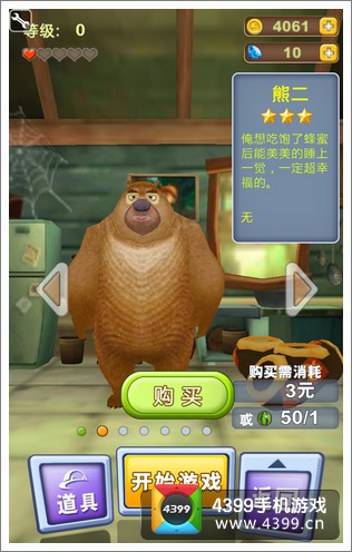 你們以為游戲就只有熊大、熊二這兩個角色這么簡單嗎?那就錯啦,在商店系統(tǒng)里,各種惡搞的熊寶花樣百出:美熊王、功夫熊大、李小熊、太空熊、圣誕熊等熊寶寶,不僅造型各異,每只熊都還有屬于自己的獨特技能,本領(lǐng)強大。