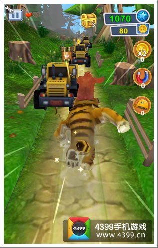 游戲中你將要扮演熊大逃脫光頭強的追擊。在急速奔跑中,橫穿滿是危險的森林,跳過刺激的蘑菇陣,從幾千英尺的懸崖垂直飛下,在古鎮(zhèn)街道中戲弄光頭強,雙方斗智斗勇,熊大最終能逃脫光頭強的追擊嗎?