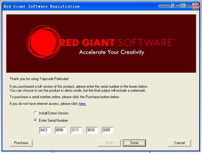 5、最后點(diǎn)擊 Yes 后會(huì)跳出如下的注冊(cè)頁面,這時(shí)我們雙擊“注冊(cè)機(jī)”文件夾中的“TCP2 Keygen.exe”,根據(jù)所提供的序列號(hào)填入下圖,然后點(diǎn)擊 Done 完成安裝