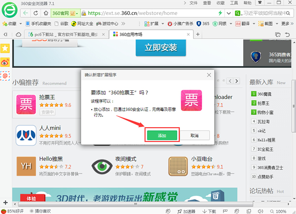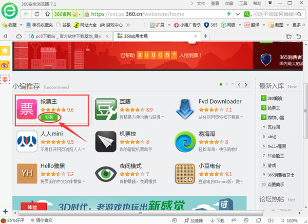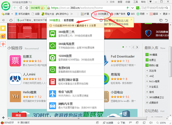 360三代搶票是360瀏覽器搶票版的一款擴(kuò)展插件,我們?cè)谑褂们靶枰劝惭b360搶票瀏覽器