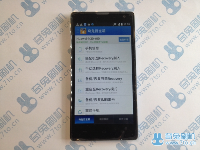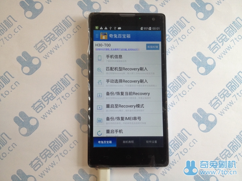 1.3 如果您的手機(jī)沒(méi)有ROOT,界面將顯示這樣,請(qǐng)將手機(jī)ROOT,即可正常操作下列菜單。ROOT方法:http://bbs.7to.cn/thread-8829-1-1.html