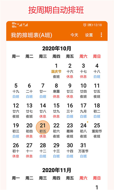 本軟件適合工作需要輪班的朋友使用,如制造業(yè)需要倒班的人員,服務(wù)業(yè)值班人員等。本軟件以萬(wàn)年歷的形式,用彩色圓點(diǎn)對(duì)各種工作日和休息日進(jìn)行標(biāo)記。只需要簡(jiǎn)單的設(shè)置,便能在日歷上排出所有的班次,方便查詢。軟件功能簡(jiǎn)單實(shí)用。