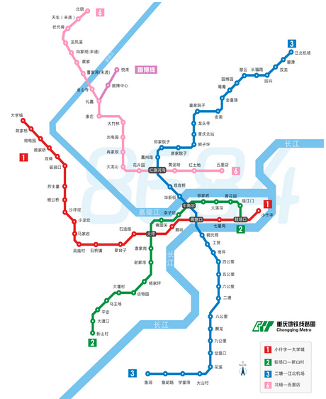 目前運(yùn)營(yíng)線路有5條,包括1號(hào)線、2號(hào)線、3號(hào)線、6號(hào)線及國(guó)博線,運(yùn)營(yíng)里程達(dá)到202公里,車站116座。由于重慶主城區(qū)地理?xiàng)l件復(fù)雜,已建成的線路采用以下兩種制式:跨座式單軌,應(yīng)用線路有2號(hào)線、3號(hào)線;鋼輪鋼軌鐵路,應(yīng)用線路有1號(hào)線、6號(hào)線及其支線國(guó)博線。兩種制式在建設(shè)成本、適宜環(huán)境、噪音控制、速度運(yùn)力等方面各有不同。