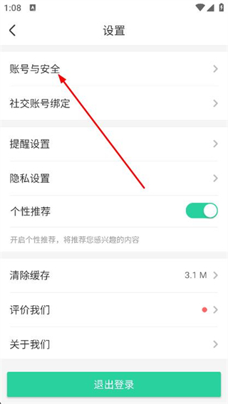 3、進(jìn)入設(shè)置頁(yè)面后,點(diǎn)擊上方賬號(hào)與安全選項(xiàng)。