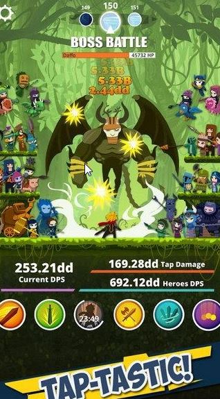 點(diǎn)殺泰坦 Tap Titans 是一款非常優(yōu)秀的冒險(xiǎn)游戲,動(dòng)作火爆,畫(huà)面清新,游戲采用半掛機(jī)式操作,玩家可以主動(dòng)來(lái)?yè)魯」治镆部梢宰屪约旱膫虮鴣?lái)替你完成。你只需要不斷的點(diǎn)擊出現(xiàn)的怪獸即可,除了點(diǎn)擊進(jìn)行攻擊外,游戲中還有角色升級(jí),購(gòu)買(mǎi)武器,召喚戰(zhàn)友等等輔助玩法,瘋狂的點(diǎn)擊怪獸,不斷的收集金幣,你就是英雄!本作非常適合打發(fā)時(shí)間。