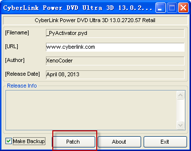 2、復(fù)制補(bǔ)丁至安裝目錄(C:\Program Files\CyberLink\PowerDVD13),右鍵管理員運(yùn)行,打開后點(diǎn)Patch完成。