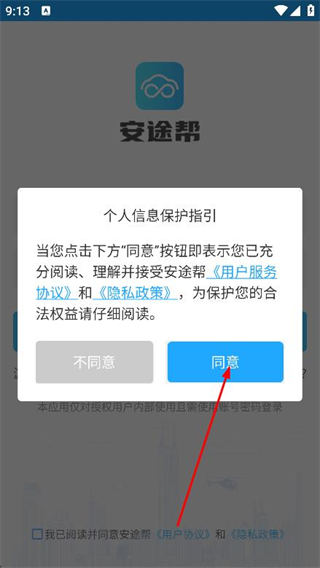 1、打開安途幫app,在彈出的提示框中,點擊同意按鈕。