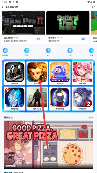 2、進入愛吾游戲寶盒主界面,點擊頂部單機游戲圖標,切換至單機游戲推薦列表,查看單機游戲資源。