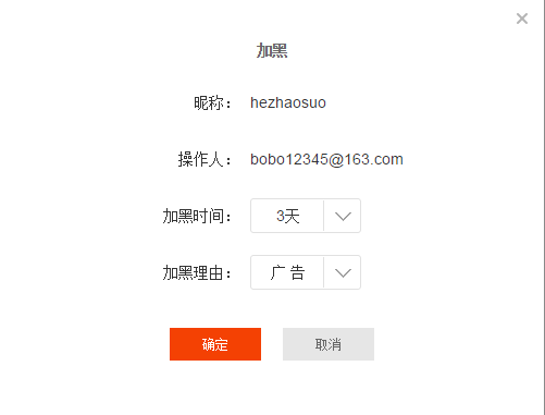 【拉黑】可以在刪除該帖子同時禁止該用戶在該主播的社區(qū)發(fā)帖??梢赃x擇加黑的時間和理由。
