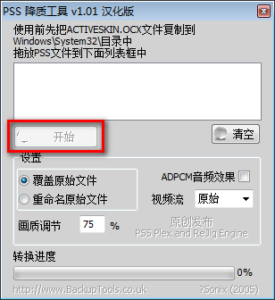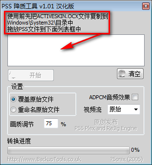 1、PSS 降質(zhì)工具使用前先把ACTIVESKIN.OCX文件復(fù)制到Windows\System32\目錄中,拖放PSS文件到下面列表框中。
