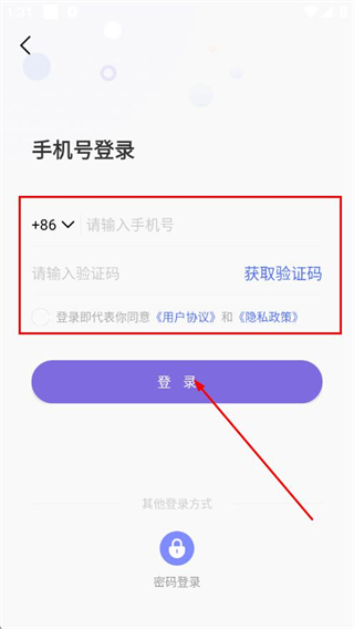3、輸入手機(jī)號(hào)碼,驗(yàn)證碼,勾選協(xié)議后點(diǎn)擊登錄。