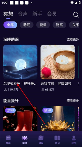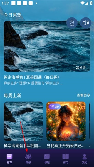 2、在冥想頁(yè)面選擇目標(biāo)冥想內(nèi)容,點(diǎn)擊進(jìn)入該內(nèi)容的播放頁(yè)面。