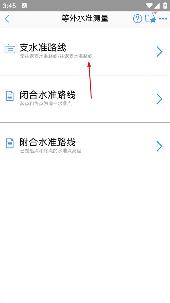 3、在等外水準測量頁面,能看到支水準路線、閉合水準路線、附合水準路線等選項,點擊支水準路線選項,進入支水準路線相關頁面。