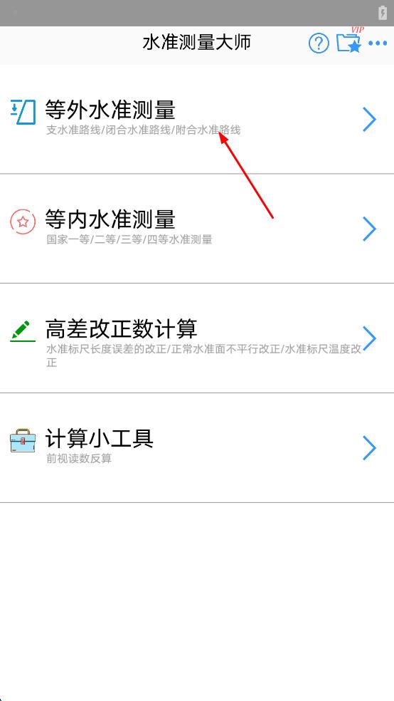 2、在APP主界面,能看到等外水準測量、等內(nèi)水準測量等功能選項,點擊等外水準測量選項,進入等外水準測量頁面。