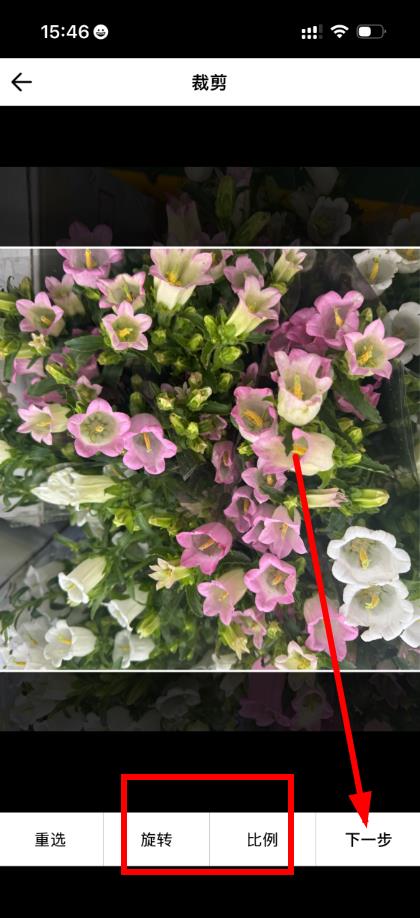 3、進(jìn)入裁剪界面,可按需進(jìn)行旋轉(zhuǎn)、調(diào)整比例等操作,之后點(diǎn)擊下一步。