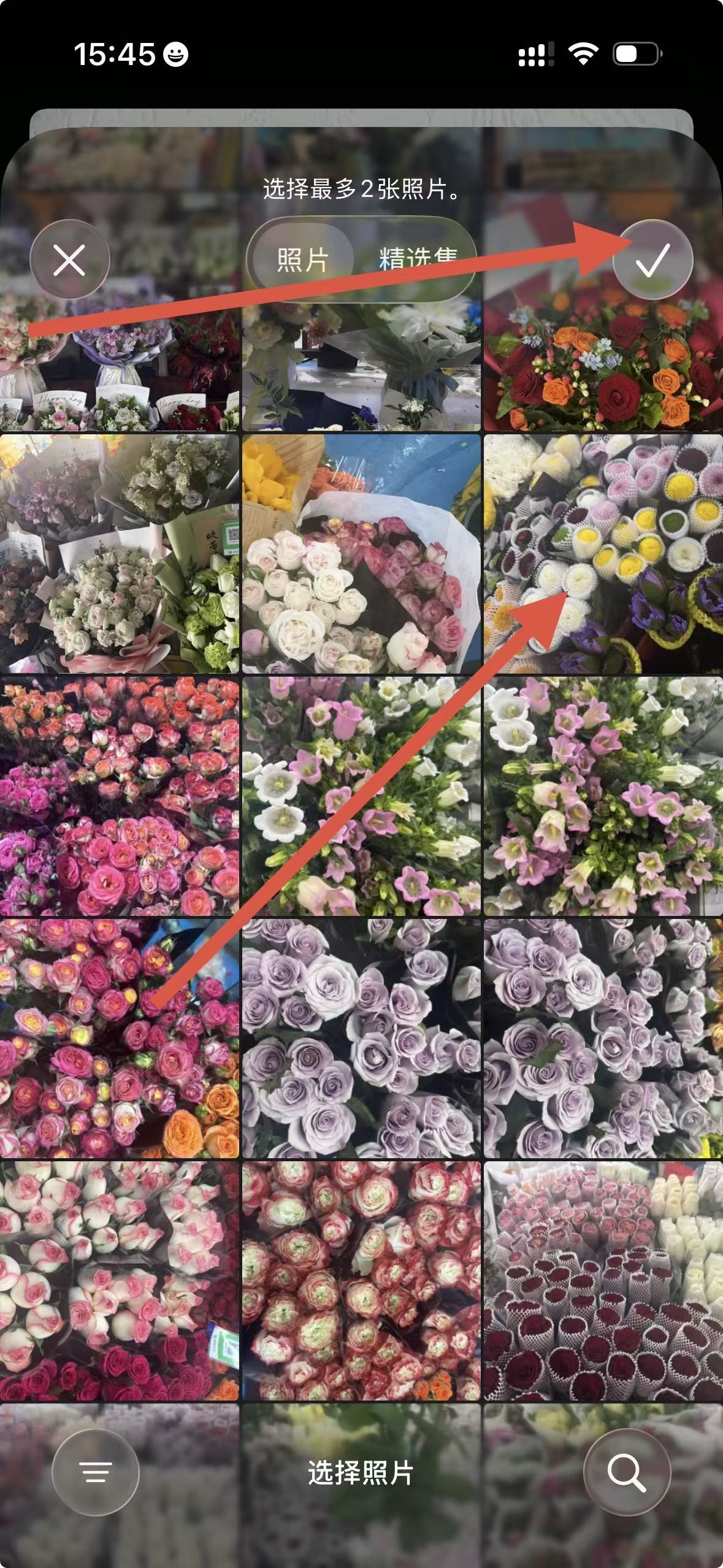 2、在照片選擇頁面,挑選要更換背景的照片,點(diǎn)擊對(duì)勾確認(rèn)選擇。
