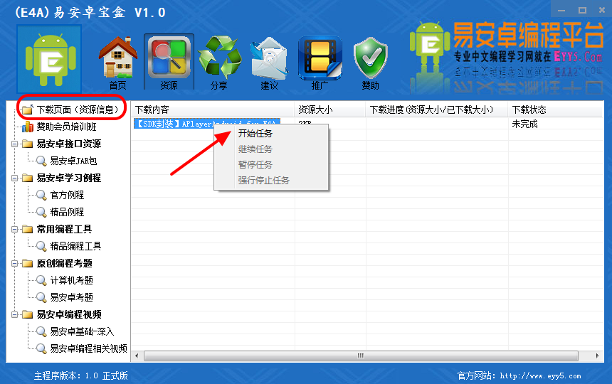 4、進(jìn)入下載頁,雙擊資源即可“開始任務(wù)”
