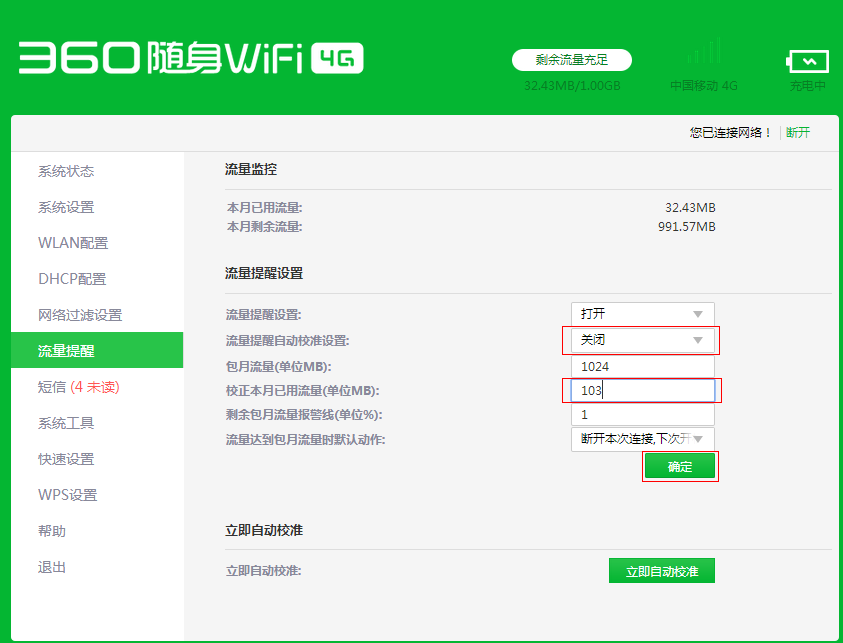 點擊接入點或者密碼,即可修改。至此360隨身WiFi 4G便配置成功。