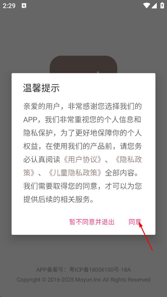 1、打開中考歷史通,在彈出的溫馨提示頁面,點擊同意,進入中考歷史通首頁。
