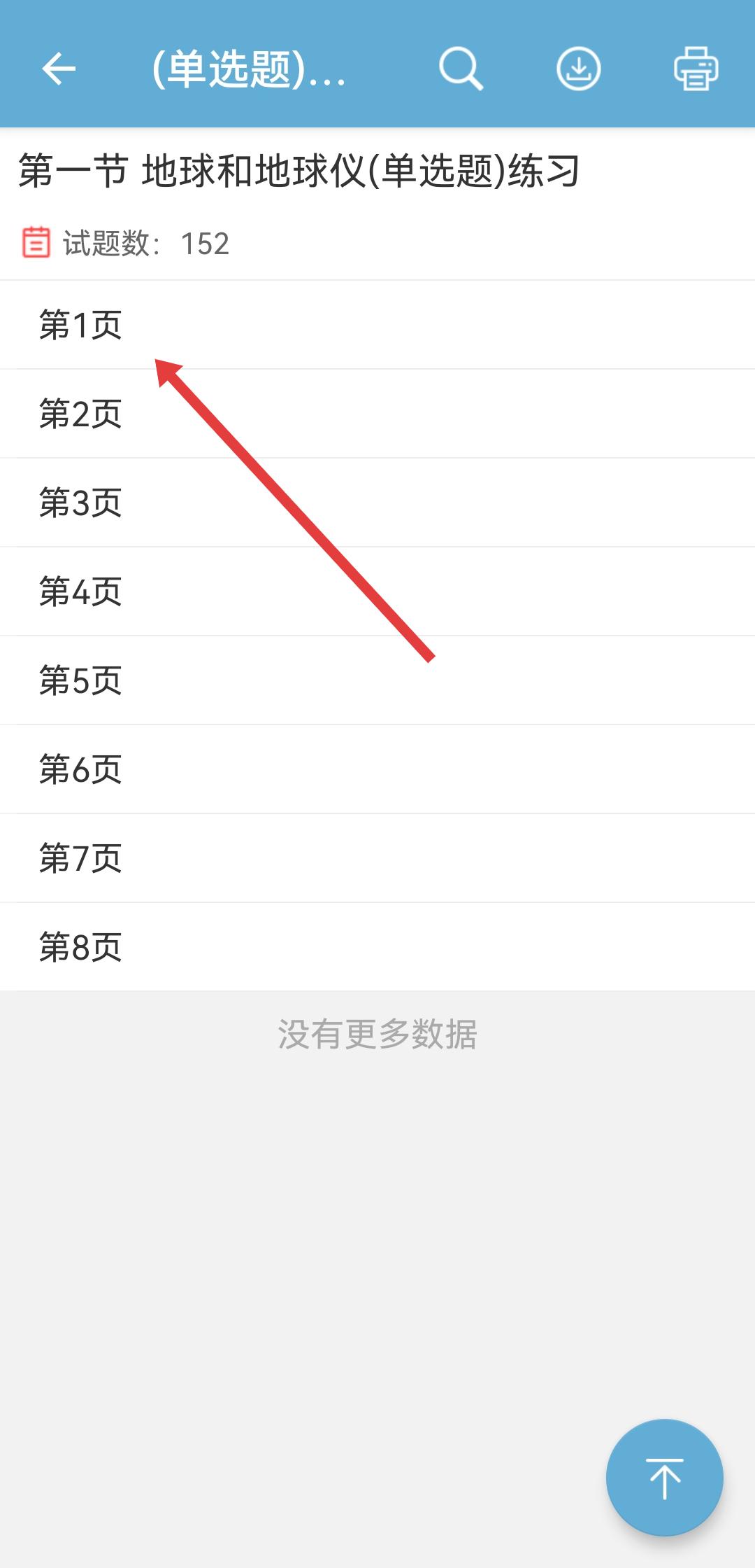 4、進(jìn)入題目的頁面后,選擇頁碼如第1頁,即可開始刷題練習(xí)。