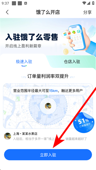 3、選擇門店類型后,點擊立即入駐,進入入駐信息填寫環(huán)節(jié)。