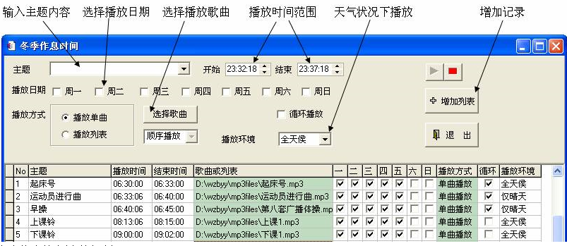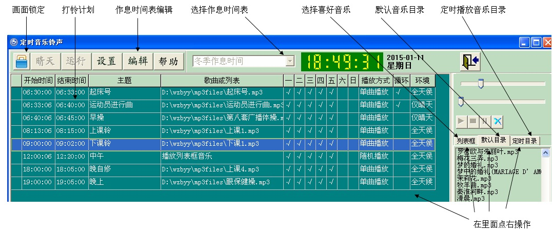 1、根據(jù)設定的時間自動播放,可以自由方便的設置多個時間段,每個時間段可設置