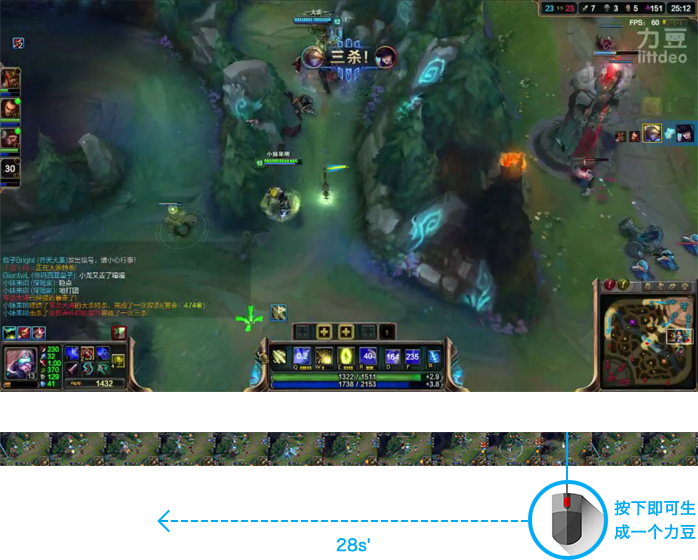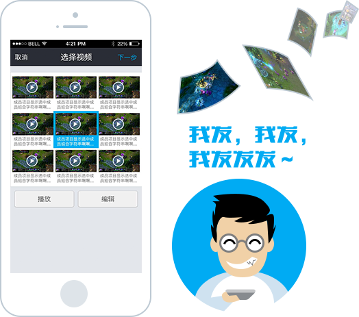 力豆拍拍是力豆APP的錄制游戲視頻插件程序,當(dāng)精彩出現(xiàn)時,按快捷鍵,之前的28秒自動錄制。 錄制好的視頻可由用戶選擇然后上傳,在手機等移動客戶端設(shè)備會即刻收到一條消 息,提示有新的力豆產(chǎn)品。之后在力豆APP上就對上傳的視頻進行播放、編輯和發(fā) 布,你的好友就可欣賞你的力豆了。