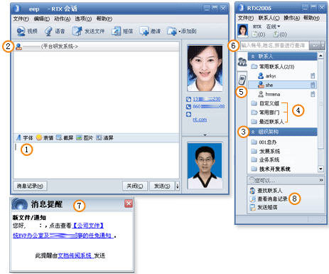 RTX2012集成了豐富的溝通方式,包括文本會話、語音/視頻交流、手機短信、文件傳輸、IP電話、網(wǎng)絡(luò)會議、以及應(yīng)用程序共享、電子白板等遠(yuǎn)程協(xié)作方式。