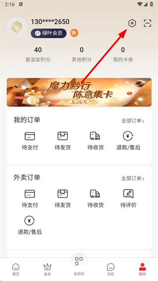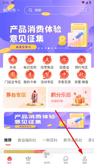 1、打開香溢家app,點(diǎn)擊底部導(dǎo)航欄中的我的選項(xiàng)。
