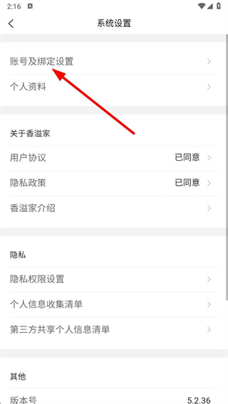 3、在系統(tǒng)設(shè)置界面中,找到并點(diǎn)擊賬號(hào)及綁定設(shè)置選項(xiàng)。