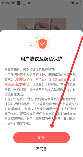 1、在打開App后,可以通過點(diǎn)擊“同意”,進(jìn)入花樂頌首頁(yè)。