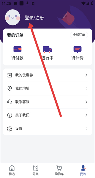 3、在個(gè)人中心頁(yè)面點(diǎn)擊“登錄/注冊(cè)”,進(jìn)入登錄頁(yè)面。