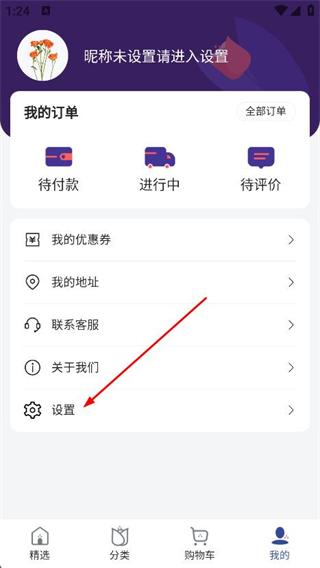 2、在我的頁(yè)面,點(diǎn)擊下方的設(shè)置選項(xiàng)。