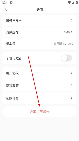 3、點(diǎn)擊退出當(dāng)前賬號(hào),即可退出登錄。