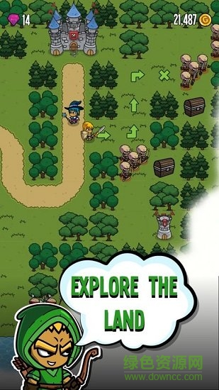 1、招募英雄,升級他們的能力,探索土地并選擇與之交戰(zhàn)的敵人。完成所有任務(wù),擊敗邪惡強(qiáng)大的骷髏王。