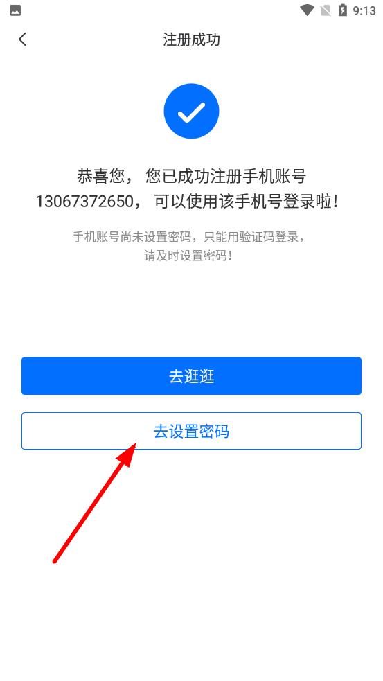 3、注冊成功頁面出現(xiàn)后,若需設置密碼點擊去設置密碼,按提示完成密碼設置即可完成賬號注冊。