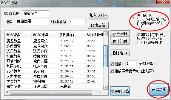 BOSS提醒,可以提醒自己提前1分鐘去打boss