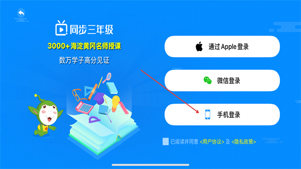 3、在登錄選擇的頁(yè)面內(nèi),點(diǎn)擊手機(jī)登錄的按鈕即可。