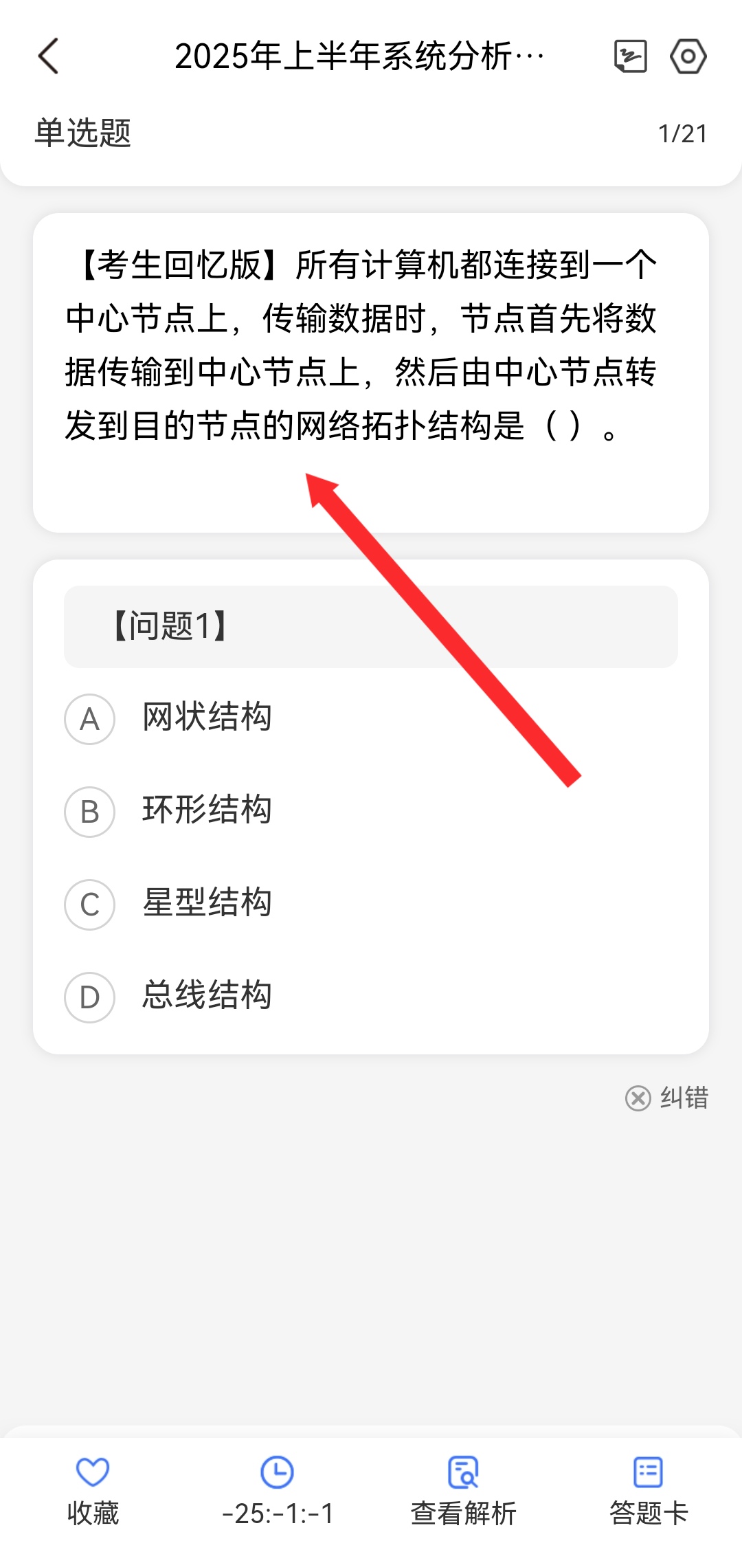 4、進(jìn)入答題界面后,即可開(kāi)始作答題目,如單選題網(wǎng)絡(luò)拓?fù)浣Y(jié)構(gòu)。