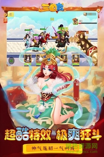 2.高清立體的游戲畫面,上百種武將隨意組合搭配,強(qiáng)大的組合技能特效釋放全屏。