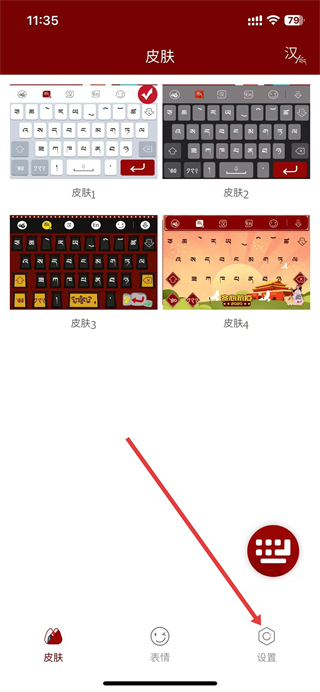 1、打開云藏輸入法應(yīng)用,點(diǎn)擊右下角設(shè)置圖標(biāo)。