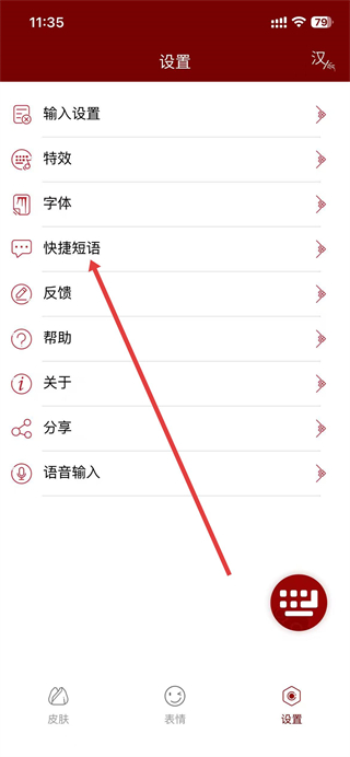 2、在設(shè)置頁面中,找到并點(diǎn)擊快捷短語選項(xiàng)。