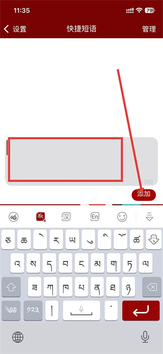4、輸入短語內(nèi)容,完成后點(diǎn)擊添加,即可成功添加快捷短語。