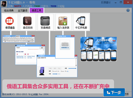 千億詞霸是一款網(wǎng)絡(luò)化的集俄、中、英三國語言翻譯學(xué)習(xí)的軟件,它包含了大量雙語例句,完整地收錄了經(jīng)濟(jì)貿(mào)易、醫(yī)學(xué)、政治、科技、化工、船舶等1600萬條專業(yè)詞匯和釋義。