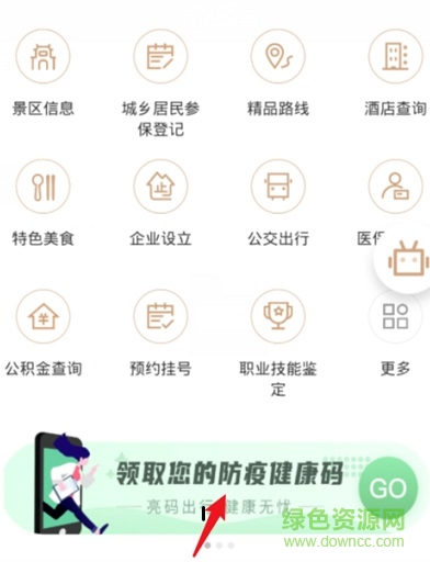 6.認(rèn)證后,在主界面,點擊領(lǐng)取健康碼的圖片。