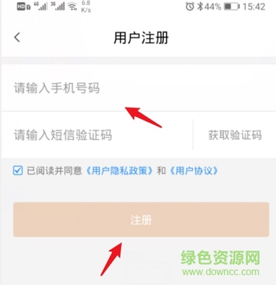 3.在注冊界面,輸入手機號以及獲取的驗證碼,點擊注冊。